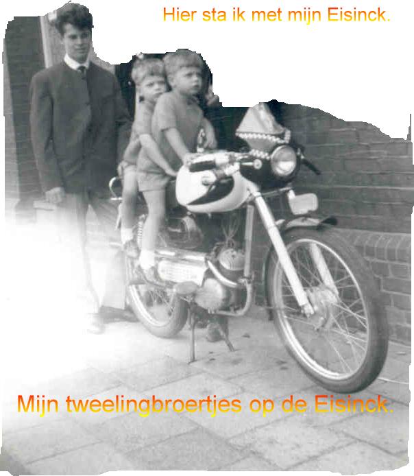 Toen we terug kwamen van vakantie wilden mijn tweelingbroertjes op de bromfiets zitten zoals U ziet.